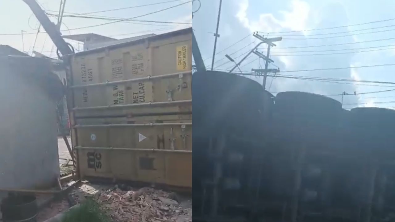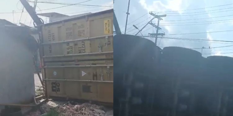 MANAUS (AM) – Na tarde desta sexta-feira (5), uma carreta tombou na Estrada do Paredão, no bairro Colônia Oliveira Machado, em Manaus, e provocou danos na rede elétrica local. O veículo derrubou um poste após o motorista perder o controle da direção, conforme relatos.