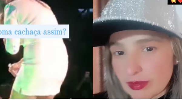 BRASIL – Uma cantora identificada como Linda Mel está viralizando nas redes sociais ao fazer um show inusitado. Em determinado momento, ela distribui cachaça coada na própria calcinha.