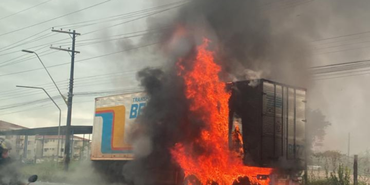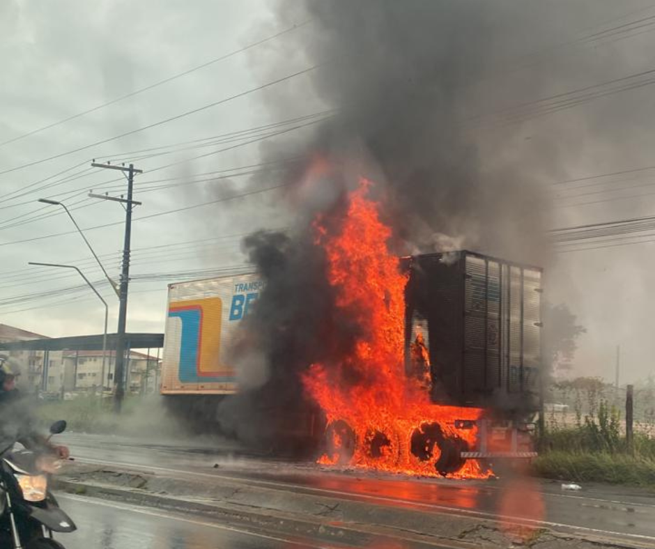 Caminhão baú pega fogo na Torquato Tapajós em Manaus pic.twitter.com/7Oh4zjg4jW