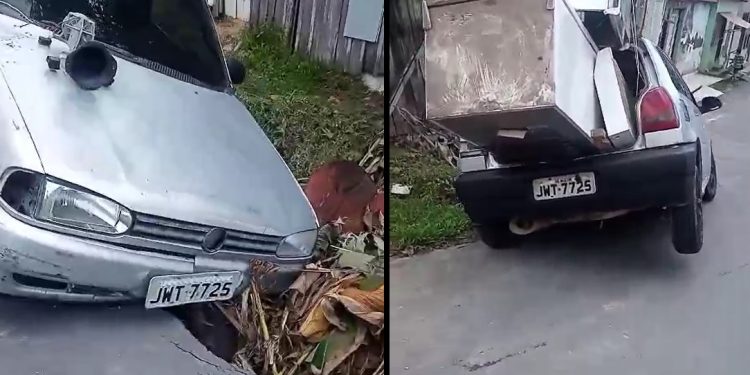 MANAUS – Um motorista caiu dentro de um buraco nesta terça-feira (22), após o local ser coberto por folhas. Os moradores disseram que o buraco foi aberto há três meses e que a Prefeitura de Manaus comandada por David Almeida ignora os apelos para que seja tapado. O vídeo foi gravado no bairro Terra Nova, na Zona Norte de Manaus.