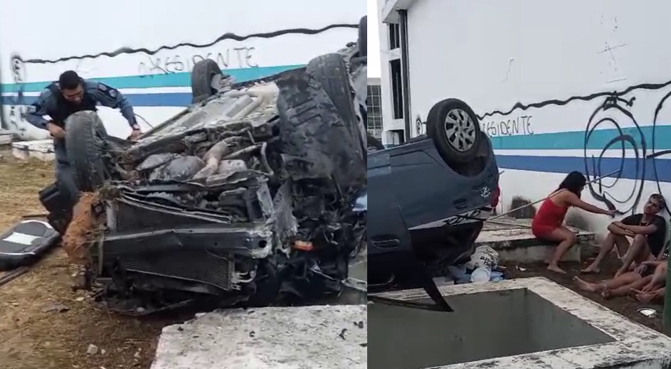 MANAUS – Um carro que estaria em alta velocidade capotou neste domingo (13), em uma rua do bairro Nova Cidade, Zona Norte de Manaus, deixando quatro pessoas feridas.