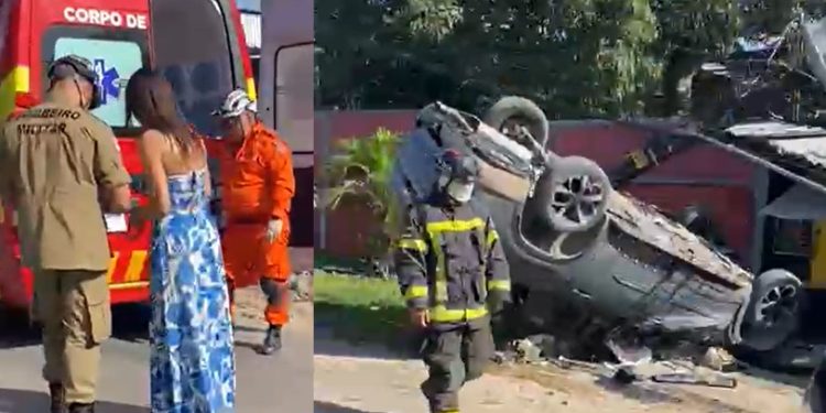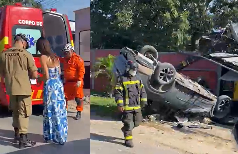 Com o impacto, o carro ficou virado e logo Samu e PM chegaram ao local.
