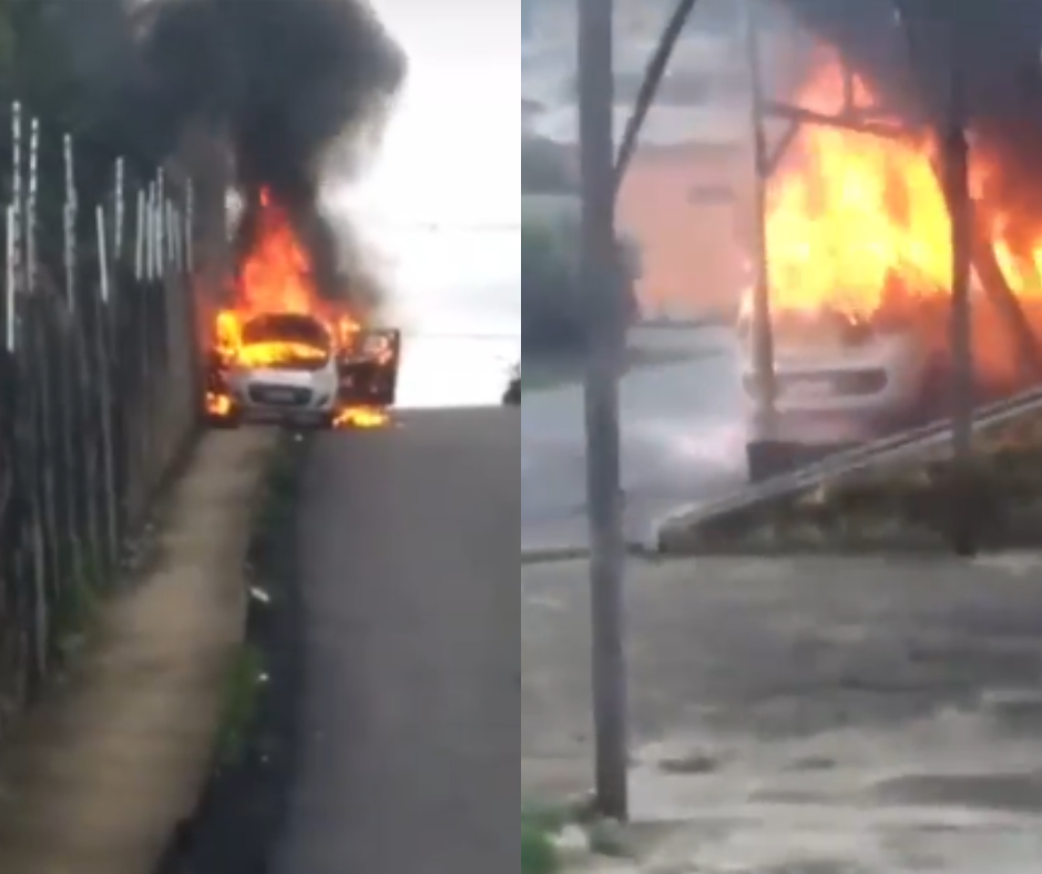 De acordo com o Corpo de Bombeiros, o incêndio pode ter começado após uma pane elétrica. O veículo entrou em chamas na rua Berquélio com Paraguaçu.