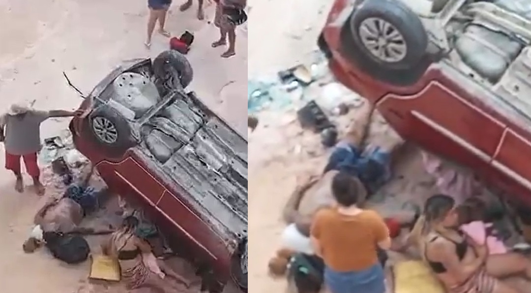 MANAUS– Um veículo despencou 5 metros no ramal do Brasileirinho, zona Leste de Manaus, neste domingo (5). Imagens mostram as pessoas feridas ao lado do carro.