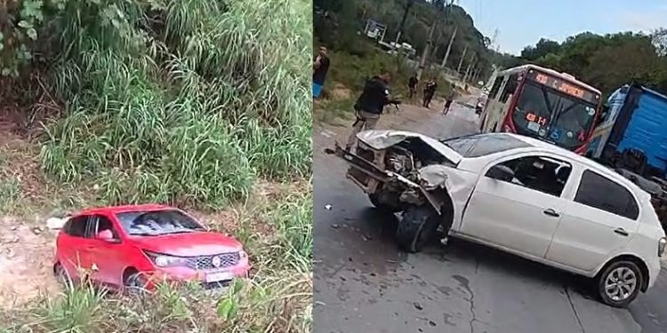 MANAUS – Um carro despencou de um barranco neste domingo (6), na AM-010. depois de bater em outro veículo na estrada que liga o Amazonas à cidade de Itacoatiara (a 176 quilômetros a leste de Manaus) e Rio Preto da Eva (a 57 quilômetros a nordeste de Manaus).