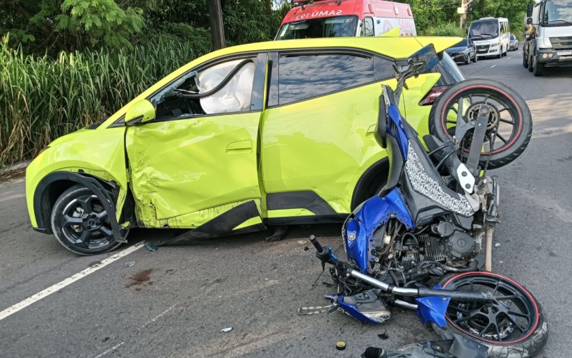 MANAUS – Um motoqueiro identificado como Erinaldo Azevedo foi atropelado violentamente por um carro elétrico nesta segunda-feira (7), em Manaus. O Veículo BYD praticamente destruiu a moto do trabalhador, que foi levado em estado grave ao João Lúcio.