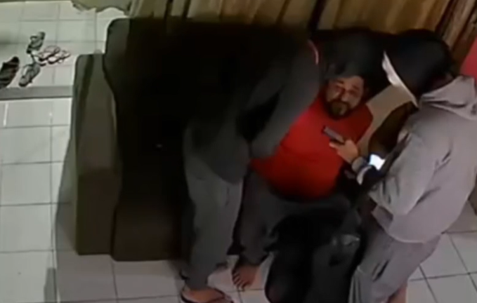 Nas gravações, os assaltantes aparecem com os rostos cobertos e forçam o morador, identificado apenas como “Leandro”, a acessar suas contas bancárias. Um dos criminosos chega a entrar no quarto onde dormia um bebê recém-nascido, vasculhando o cômodo com uma arma em mãos.