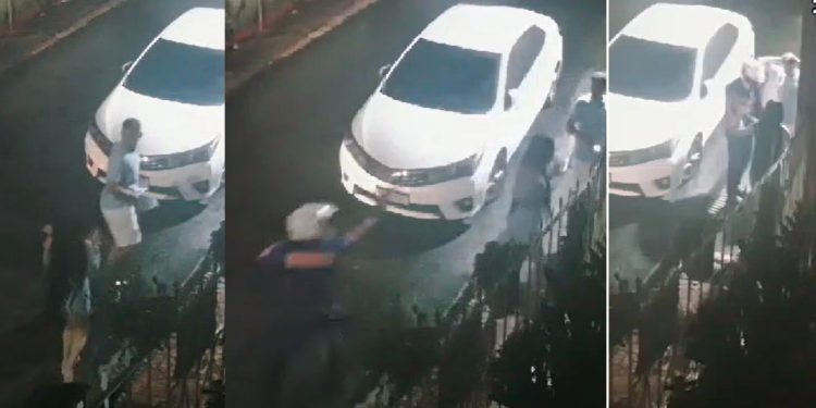 As câmeras mostram o crime cometido com arma e muita violência. O caso foi encurralado na porta de casa e foram covardemente rendidos pelos criminosos, que exigiram os celulares e o dinheiro do casal.