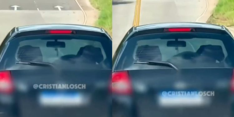 BRASIL – Um casal foi filmado fazendo saliência BR-163, após o município de Guaraciaba, no sentido a São José do Cedro, em Santa Catarina, enquanto o carro estava em movimento.
