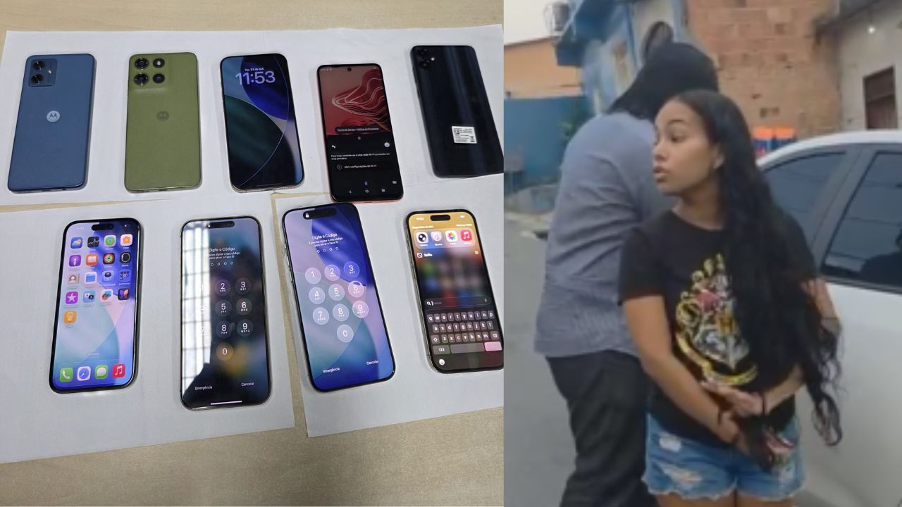 De acordo com a polícia, os dois já possuíam diversas passagens por furto, receptação e estelionato. Durante a abordagem, foram apreendidos diversos celulares, principalmente iPhones 16 Pro Max, todos provenientes de roubo. Na operação desta terça-feira, foram identificados cinco aparelhos roubados: dois iPhones 16 Pro Max, um iPhone 15 Pro e dois iPhones 14 Pro, além de outros dispositivos que foram bloqueados e encaminhados para perícia.
