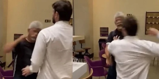 O trabalhador, então, teria dito algo sobre saber lutar jiu jitsu. O homem fala que “então vou chamar meu irmão” e dá um soco no funcionário, que revida.