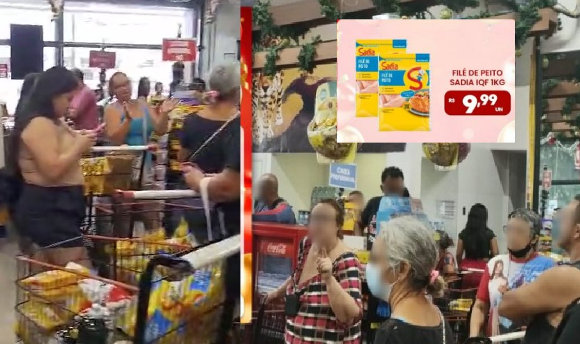 Os clientes começaram a gritar, brigar e xingar o gerente. Para levar o frango mais barato, o consumidor só poderia comprar uma bandeja. Só que o povo encheu o carrinho e queria levar o frango.