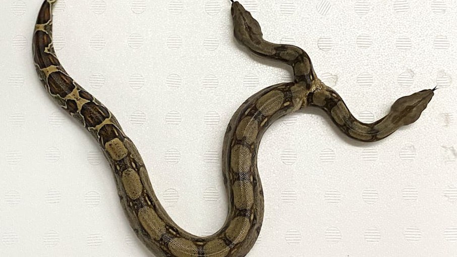 Conhecida na Alemanha como “cobra ídolo”, o animal de duas cabeças é um macho, tem apenas três meses de idade e vive em Baden-Württemberg com criador de répteis Stefan Broghammer. A cobra é saudável e come e bebe sempre com as duas cabeças.