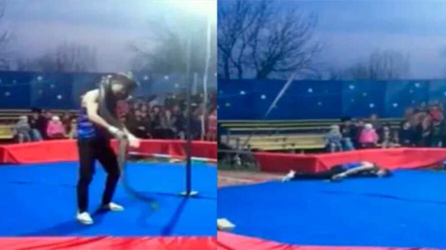 MUNDO – Um vídeo que circula na internet mostra o momento em que uma apresentação deu errado para um tratador de cobras, no circo. Ele exibe o animal de grande porte com suas mãos e sem qualquer proteção. Com a cobra no pescoço, o homem não sabia que este seria seu erro que custaria a vida.