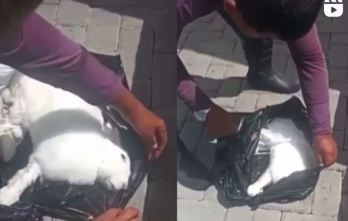 De acordo com informações repassadas para a polícia, uma moradora foi jogar o lixo e notou que algo se mexia na lixeira do condomínio. Ela pediu ajuda de um funcionário, que rasgou o saco e encontrou o coelho machucado, mas ainda respirando.