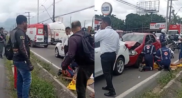 MANAUS (AM) – Uma mulher grávida não identificada e uma criança de aproximadamente 6 anos ficaram feridos na tarde desta quarta-feira (30) durante uma colisão entre carros. O fato ocorreu na avenida Torquato Tapajós, perto da fábrica da Coca-Cola.