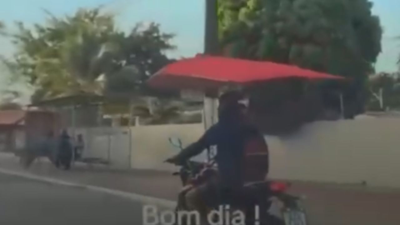MANAUS (AM) – Um registro inusitado chamou a atenção dos manauaras nesta semana. Um motociclista foi flagrado pilotando com uma sombrinha sobre a cabeça para se proteger do forte calor na avenida São Jorge, no bairro São Jorge, zona oeste de Manaus.