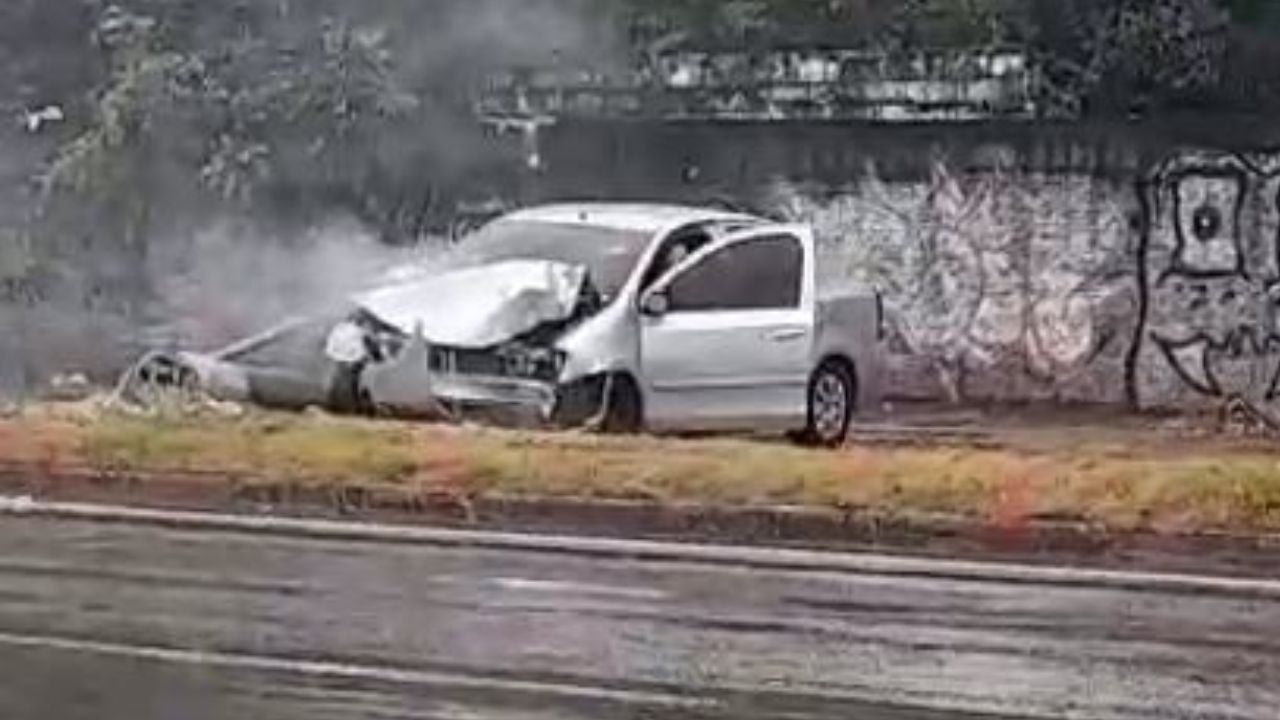 De acordo com informações de agentes do Instituto Municipal de Mobilidade Urbana (IMMU), o condutor de um carro perdeu o controle após o pneu estourar. Ele colidiu contra um poste.