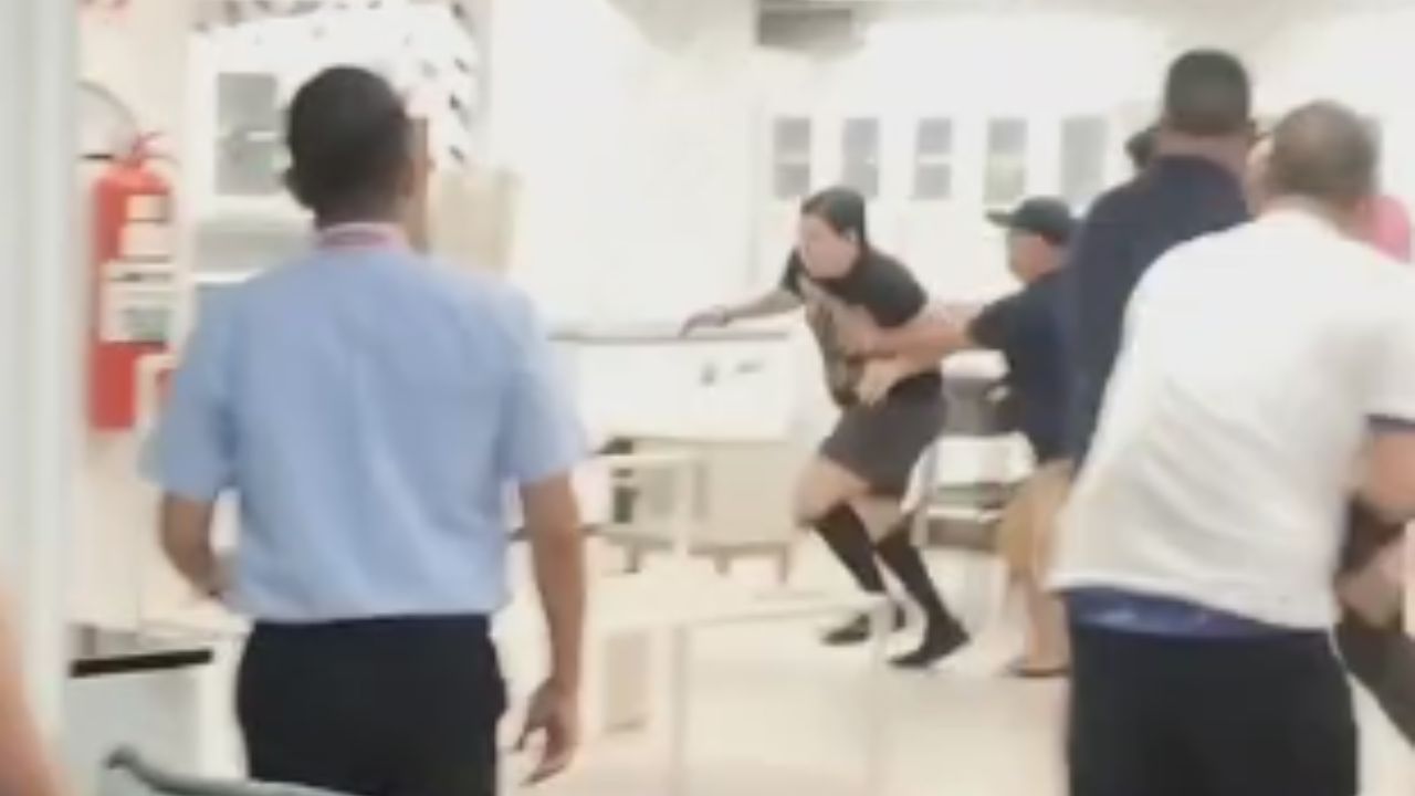Nas imagens, é possível ver uma mulher bastante exaltada, enquanto seguranças e colaboradores da loja tentam conter o jovem e evitar novos danos.