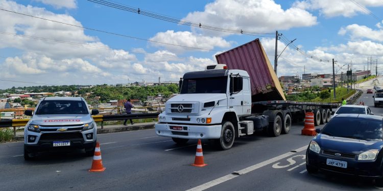 MANAUS (AM) – Por pouco um contêiner não esmagou um carro na manhã desta quarta-feira (21), na avenida das Torres, Flores, zona Norte de Manaus.