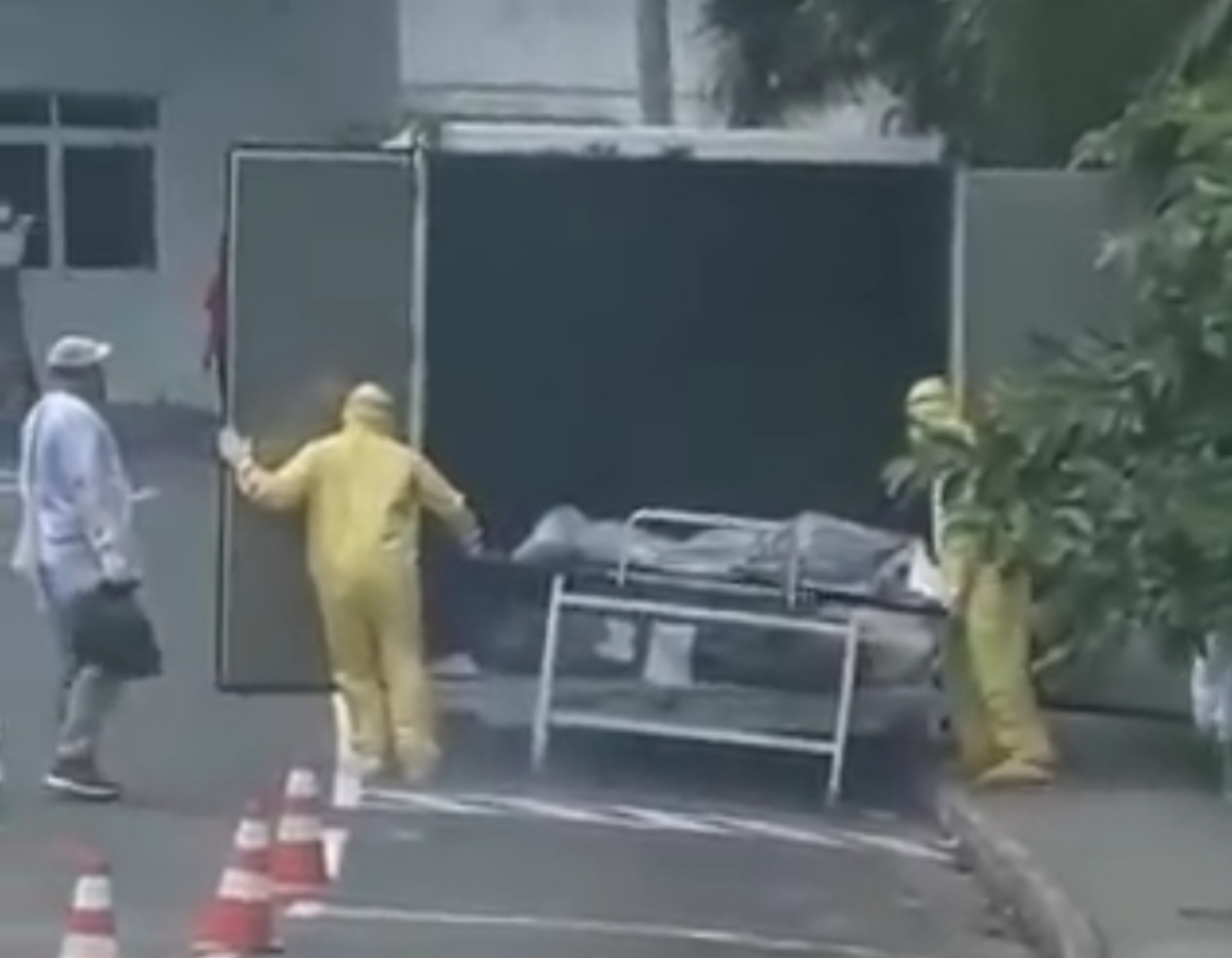 MANAUS-AM| Um vídeo que está circulando na internet, mostra uma cena macabra de profissionais da saúde levando corpos com suspeitas do novo coronavírus para uma câmara frigorífica, instalada no Hospital e Pronto Socorro 28 de Agosto. As imagens gravadas no estacionamentos do hospital, mostram corpos empilhados dentro do container.