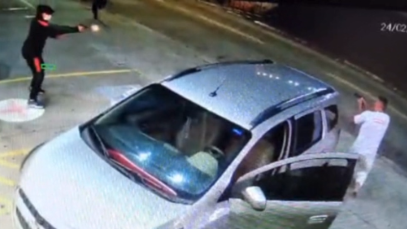 O crime foi filmado e aconteceu por volta das 5h20. A esposa do PM estava dentro do estabelecimento e ele e a filha a aguardando dentro do veículo quando três criminosos chegaram. Eles chegam a acenar para o cabo e dar “tchauzinho”.