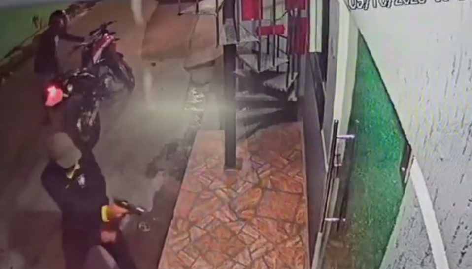 Uma câmera de segurança filmou o momento em que dois homens chegam numa motocicleta e param na frente. Na residência estavam além do professor, uma idosa 82 anos, mãe dele, e a sobrinha de 9 anos.