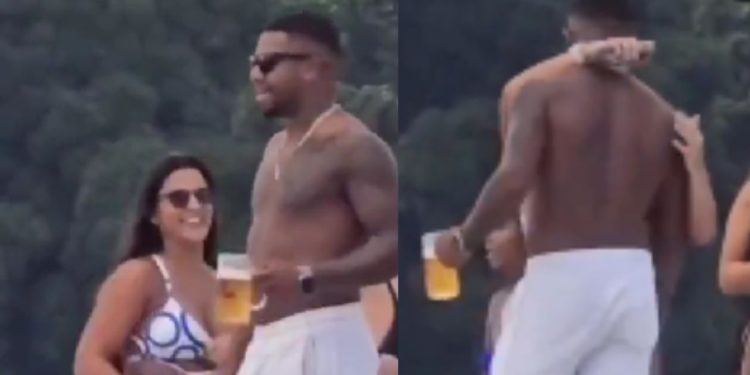O vídeo publicado pela página Alô Juca, mostra o baiano em uma lancha com os amigos e tasca um beijão em uma mulher sarada.
