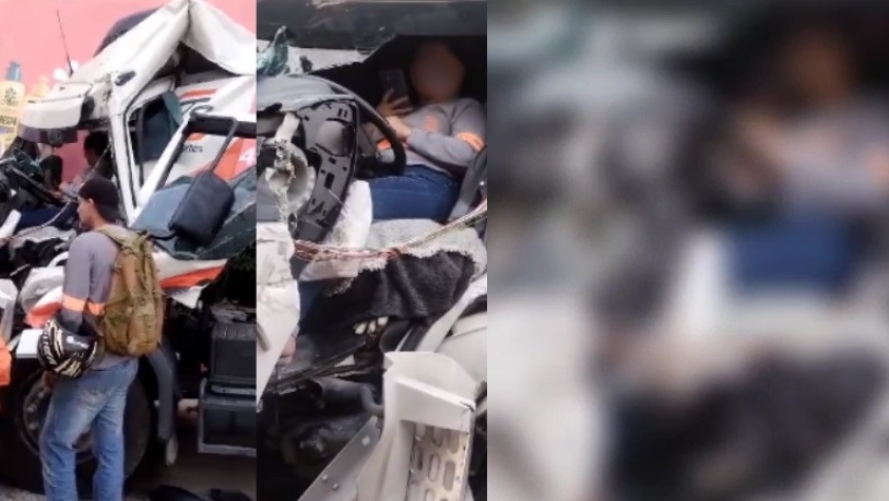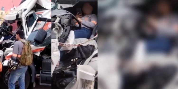 MANAUS– Uma motorista ficou presa nesta sexta-feira (28), nas ferragens de uma carreta, na avenida Mandi, Distrito Industrial, zona sul da capital, mas teve a calma e coragem de usar o celular para avisar aos familiares sobre o acidente..