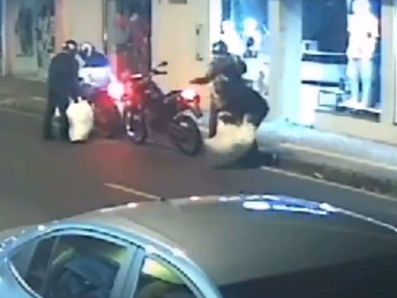 Uma dupla de criminosos chegou em duas motos e conseguiram entrar no local quebrando o vidro do estabelecimento a marteladas. Cerca de R$ 20 mil em produtos foram levados em 4 sacos.