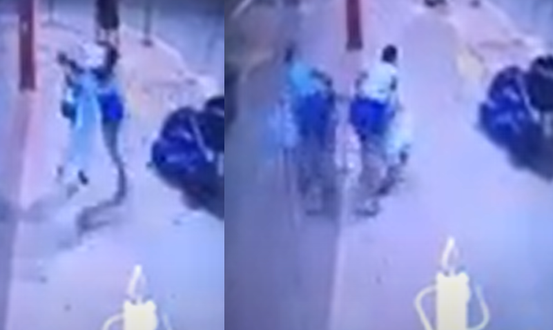 Conforme as imagens, a que ataca a colega é Gislene de Paula. Ela está na calçada esperando Stefany Ortega sair e por volta das 19h vê a dentista saindo e já a agarra pelos cabelos.