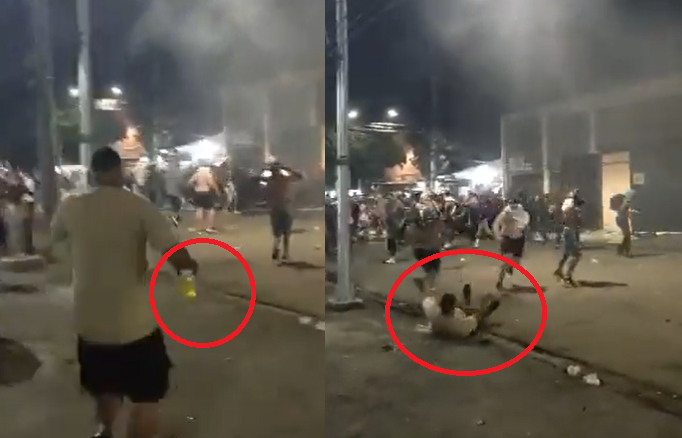 Já na rua, vários torcedores aparecem brigando e a Polícia Militar foi acionada. Antes, houve ainda uma tentativa de invasão ao campo.