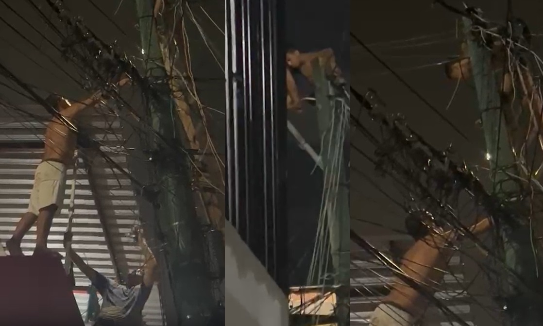 MANAUS – Um jovem aparentemente alterado subiu no poste na noite deste domingo (17), por volta das 19h30, e deu trabalho para a família e os Bombeiros de Manaus. O caso ocorreu no bairro Petrópolis, Zona Sul.