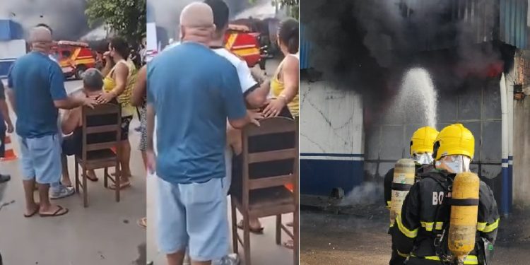 MANAUS – Um senhor que seria o dono da Denito´s chorou diante do fogo que tomou conta da fábrica nesta quarta-feira (14), na rua Santa Catarina, comunidade Rio Piorini, bairro Colônia Terra Nova, zona norte de Manaus.