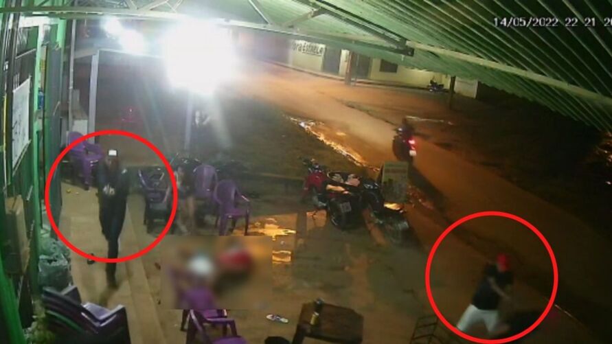 O crime aconteceu por volta das 22h21, enquanto as vítimas conversavam em frente a uma distribuidora de bebidas. Câmeras de segurança registraram o momento.