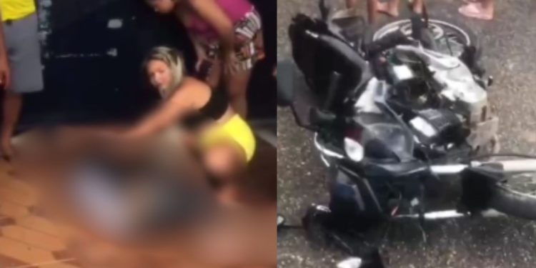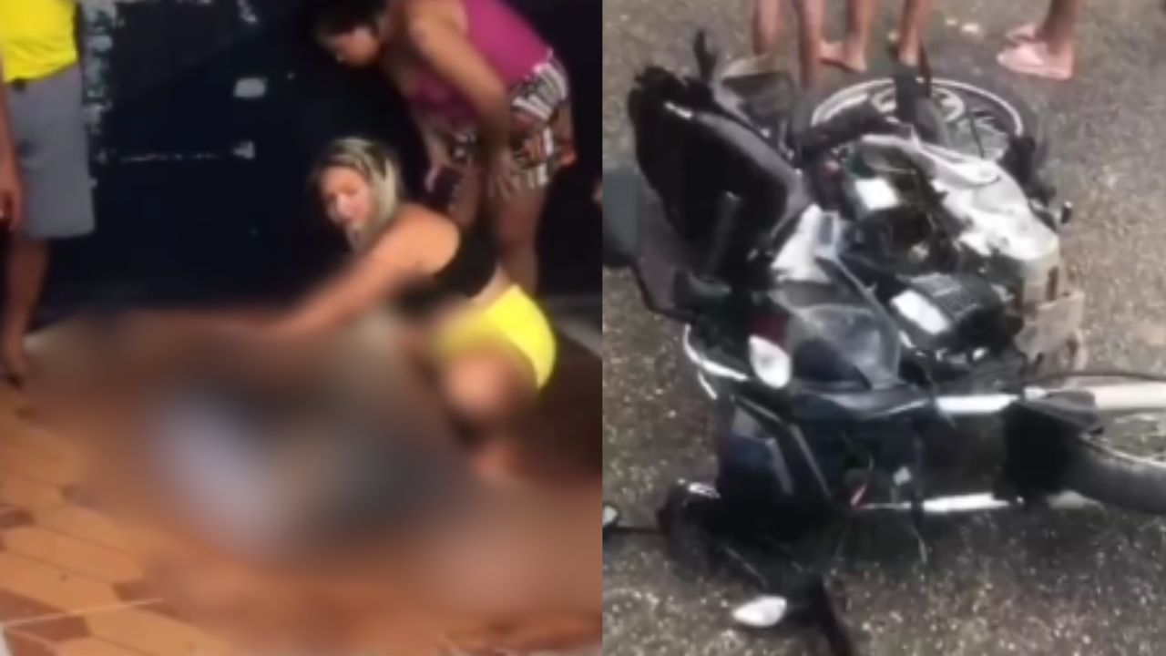 Ambos bateram violentamente contra a pista, mas ficaram conscientes até a chegada de uma ambulância do Serviço de Atendimento Móvel de Urgência (Samu).