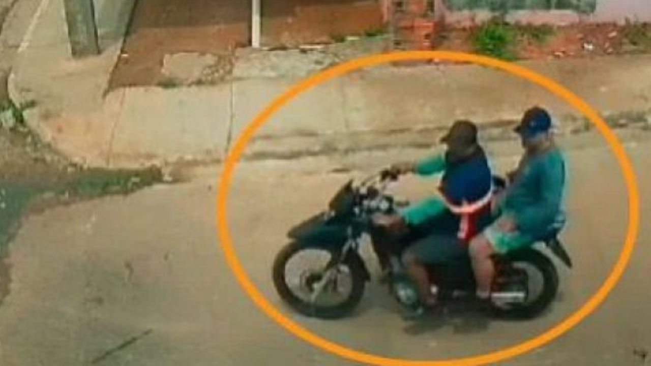 Em um vídeo gravado por uma câmera de vigilância, é possível ver os criminosos em cima de uma moto modelo XRE 300, de cor preta e sem placa.