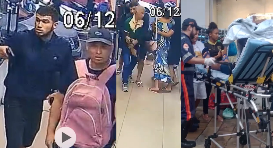 Um vídeo mostra que um homem chegou a ser atingido no pé e uma equipe do Serviço de Atendimento Móvel de Urgência (Samu) o atendeu e encaminhou para a ambulância.