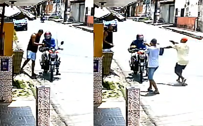 Câmeras de vigilância registraram o momento da ação criminosa, por volta das 11h. O motorista estava aguardando o passageiro fazer a transferência pelo celular quando ambos são surpreendidos por uma dupla de criminosos.