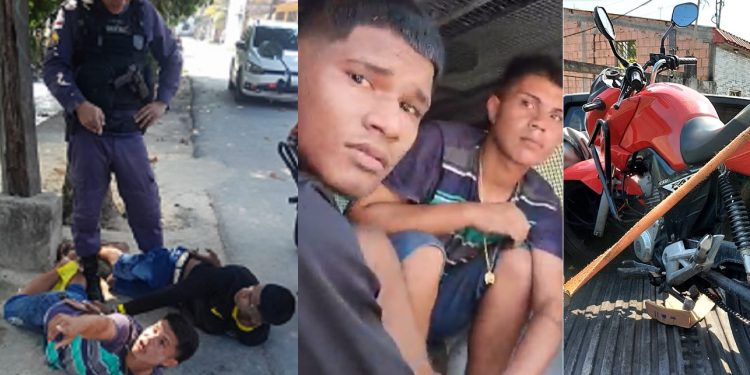 A polícia também conseguiu recuperar a moto por meio de monitoramento. Os policiais da 30ª Companhia Interativa Comunitária (Cicom) aparecem em vídeos rendendo os suspeitos.