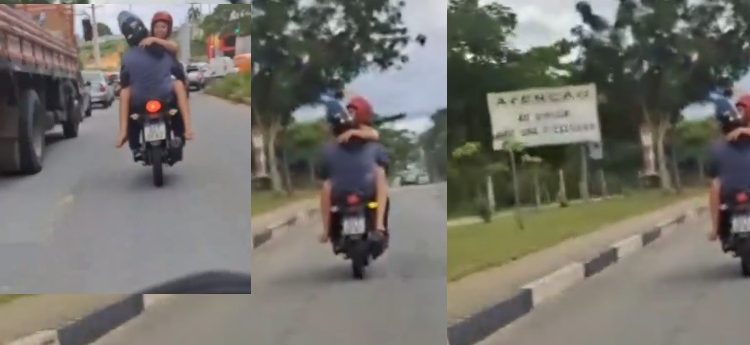 ‘Vem sentando no colinho do pai’: Mulher é flagrada sentada em motoqueiro em avenida de Manaus pic.twitter.com/ewZ0CTBHEA