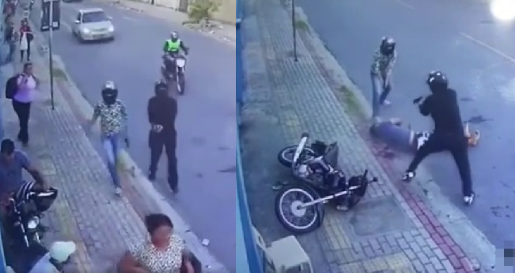 Conforme as imagens, a vítima estava sentada sobre uma motocicleta estacionada em cima de uma calçada na Avenida Dom Almeida Lustosa, quando dois homens armados aparecem a pé, se aproximam e disparam várias vezes.