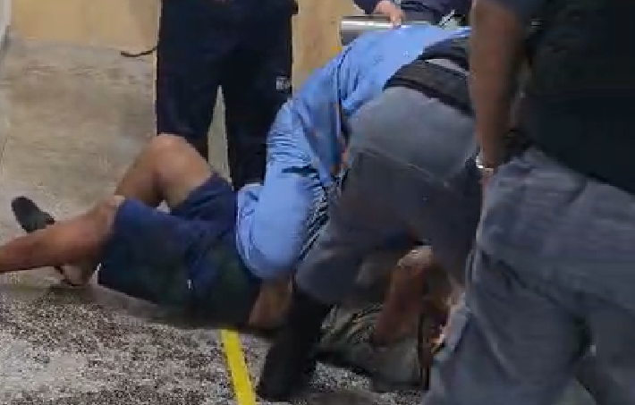Cenas registradas em vídeo mostram o momento de tensão, com o homem visivelmente alterado sendo contido por policiais militares que o cercaram no local. Ele estaria, supostamente, em um surto psicológico e chegou a espalhar gasolina. A intervenção foi rápida e evitou que as chamas fossem iniciadas.