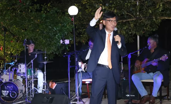 Descontraído, o embaixador também embalou a noite cantando Reginaldo Rossi, a música “Garçom”, ao lado da esposa, a embaixatriz da Coreia, Chun Jin-ah.