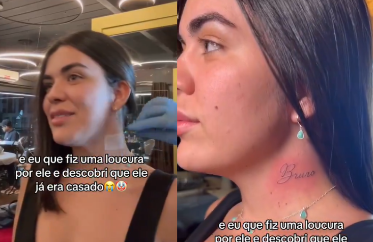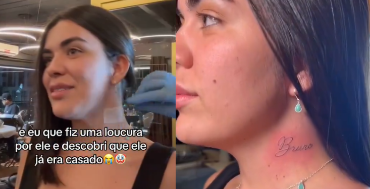 BRASIL – Viralizou nas redes sociais, nesta quarta-feira (24), um vídeo de uma mulher do Rio de Janeiro que resolveu fazer uma loucura de amor. Ela tatuou no pescoço o nome do próprio namorado, mas ele é casado.