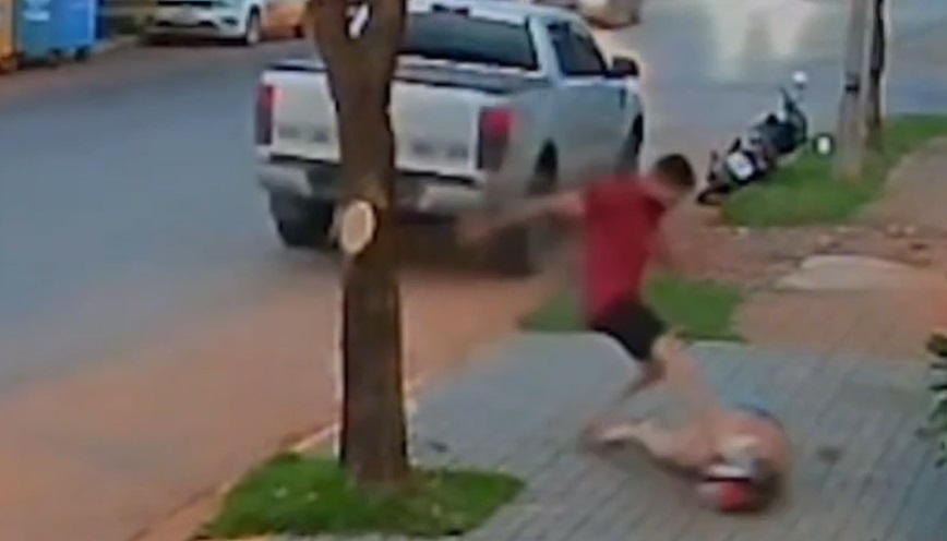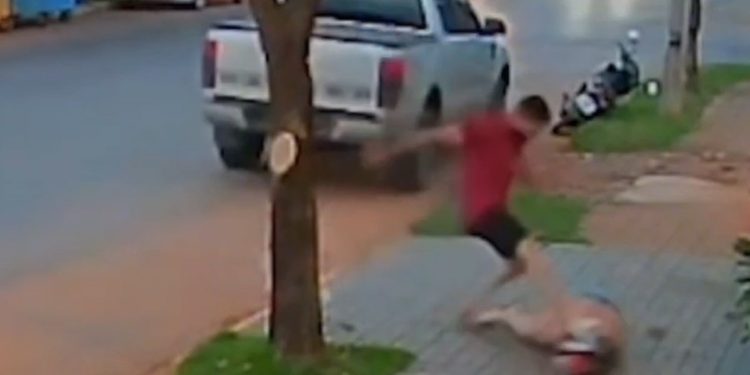 BRASIL – Um vídeo forte compartilhado nas redes sociais nesta segunda-feira (29), mostra a agressão covarde cometida por um empresário na cidade de Lucas do Rio Verde, em Mato Grosso.