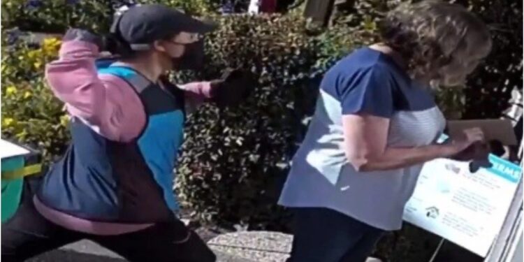 EUA | Uma jovem de 21 anos foi detida depois de agredir uma idosa, 67, com mais de dez socos na cabeça, em Alameda, na Califórnia, Estados Unidos, na quinta-feira (3). Ela também perdeu o emprego de entregadora da Amazon, já que o episódio de violência ocorreu enquanto trabalhava. Imagens de câmeras de segurança mostram o momento exato em que Itzel Ramirez agride a vítima.