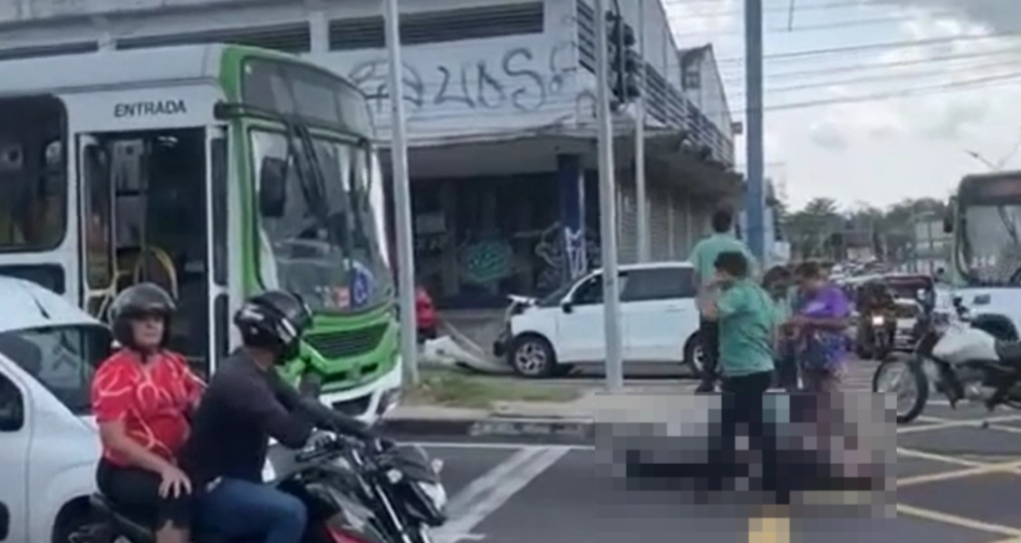 MANAUS – Além do acidente do engavetamento, o motorista do carro branco vítima do acidente nesta segunda-feira (10) foi atropelado por um ônibus ao descer do carro na Constantino Nery.