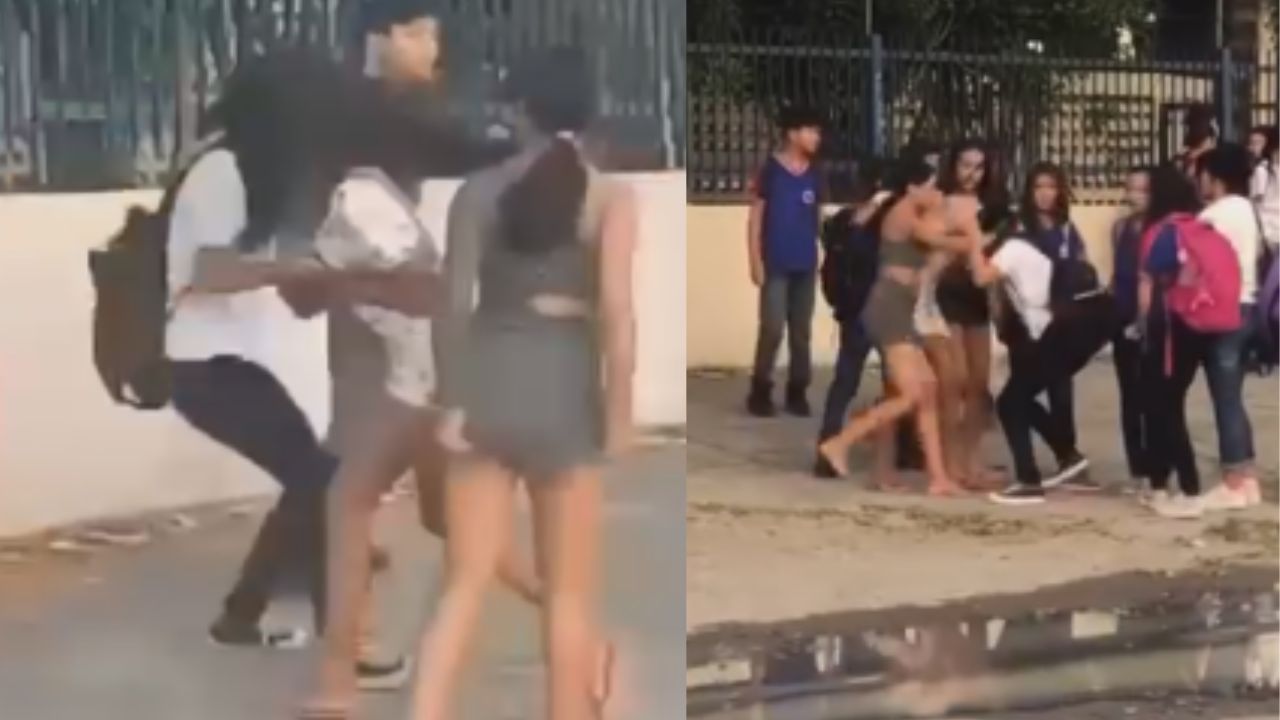 De acordo com informações, uma aluna foi espancada por uma ex-colega da escola durante uma discussão na hora da saída. Nas imagens ninguém faz nada, apenas incentiva.