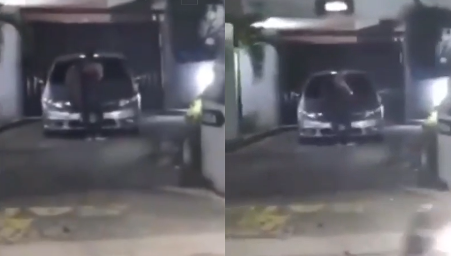 Nas imagens, ela espera os dois saírem e ao ver que o marido estava com a outra, se jogou na frente do carro para bloquear a saída. Ela impediu que os amantes saíssem e ficou fazendo escândalo.